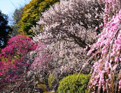 妙智池周辺の梅が見頃を迎えています。