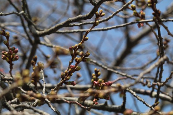 日々暖かくなってきていますが、当山のソメイヨシノは数輪開花が確認できました