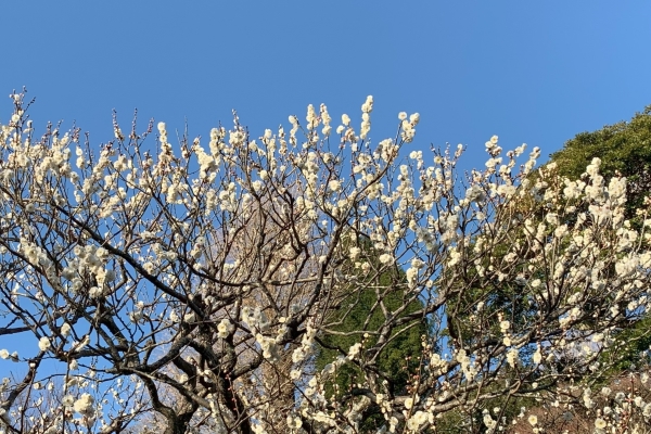 早咲きのトウジバイ(冬至梅)が見頃を迎えています