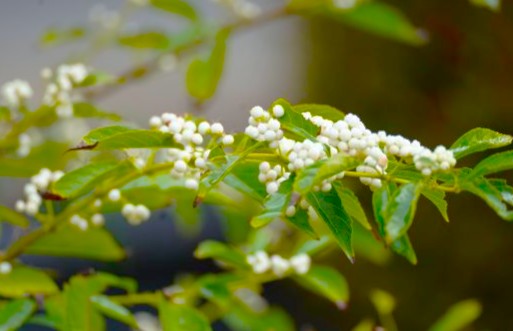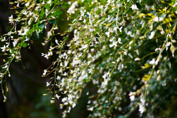 ハギ(萩) 細くしなやかな枝に小さな白い花が連なるように咲く白萩。風に揺れるその姿は、まるで白い花のシャワーのように、静かに流れ落ちる水を思わせます。