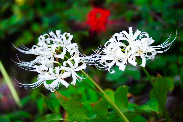 赤い彼岸花はやや見頃を過ぎましたが、白いヒガンバナはまだ美しい姿を見せてくれています。