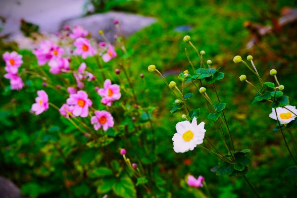 季節をまたいで咲き続ける芙蓉の花。夏の陽ざしも秋の涼風も受けとめながら、変わらぬ美しさを見せてくれています。
