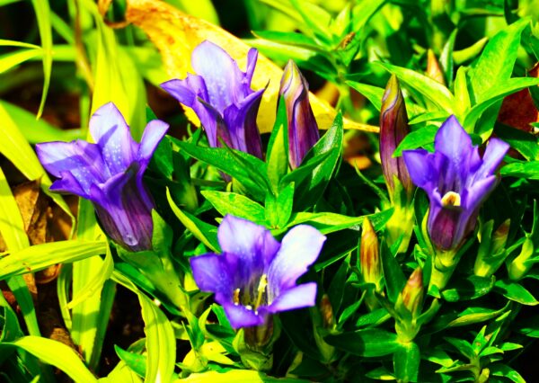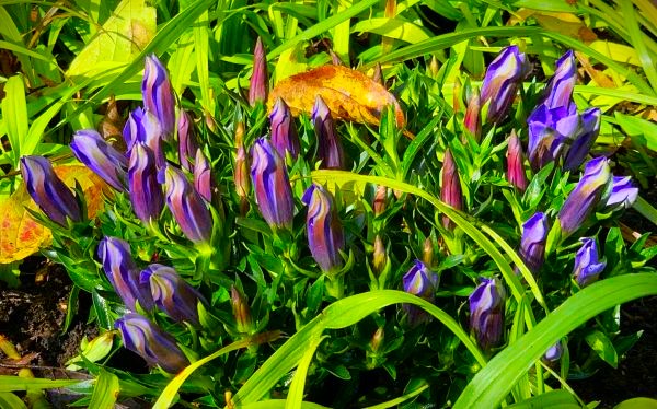 朝は閉じていたリンドウの蕾が、昼の陽ざしを浴びてゆっくりと花を開きました。