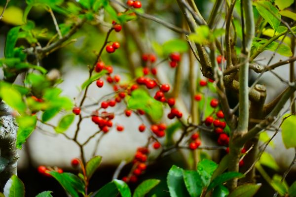 ウメモドキ(梅擬) 鮮やかに色付くウメモドキの実。秋から冬にかけて長く楽しめる赤い実です。