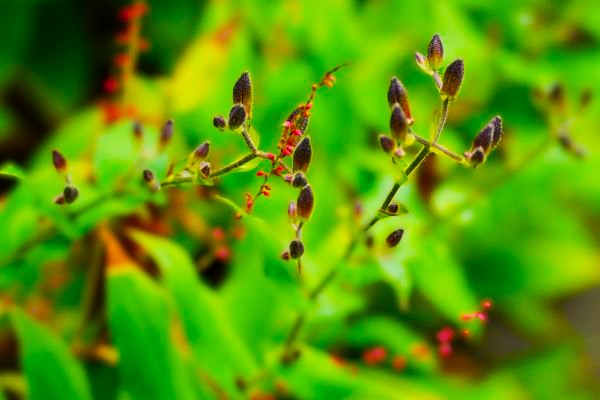 まだ多くは蕾のままですが、ごく一部では斑点模様の花がそっと顔をのぞかせました。