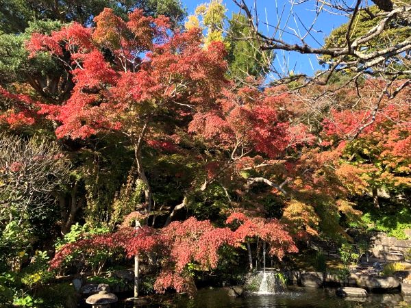 紅葉した木々が池に姿を映し、ひときわ風情ある景色をつくり出しています。水鏡に浮かぶ秋の趣もあわせてお楽しみ下さい。