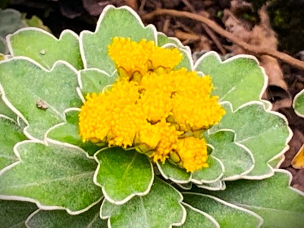 イソギク(磯菊)が見頃を迎えています。波打ち際にも自生する強さを持ちながら、丸く愛らしい黄色の花を咲かせるのが特徴です。