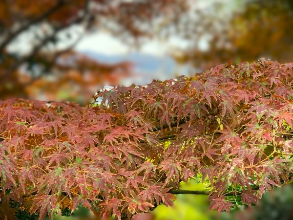 境内を歩くと場所ごとに紅葉が違う表情を見せてくれます。立ち止まる度に、少しずつ雰囲気の違う景色が広がり写真にも優しい彩りが映ります。