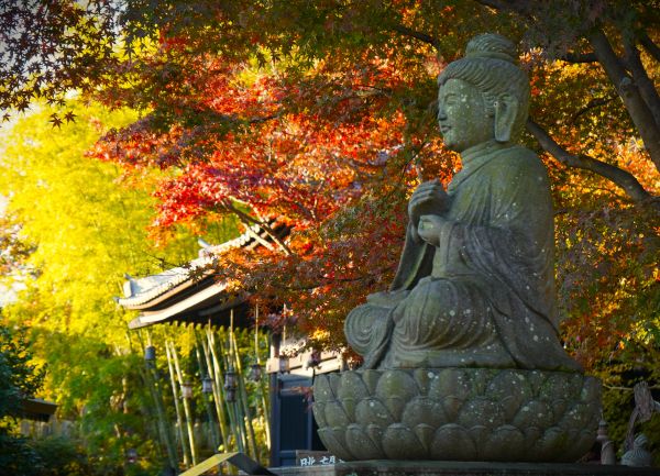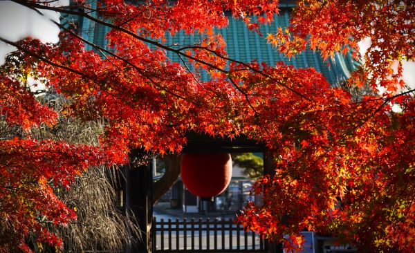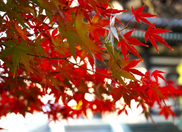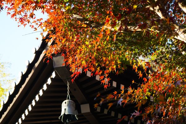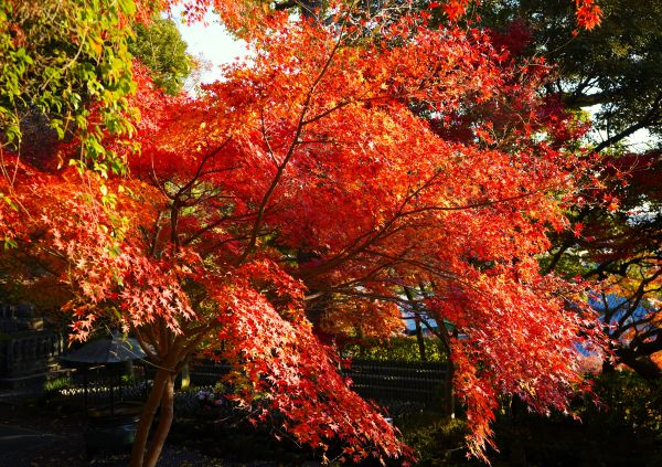 刻一刻と変わる光と影の中で、秋の彩りが境内いっぱいに広がる一枚です。