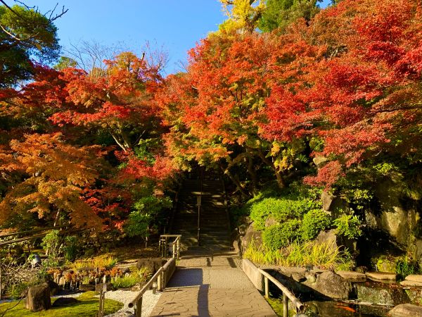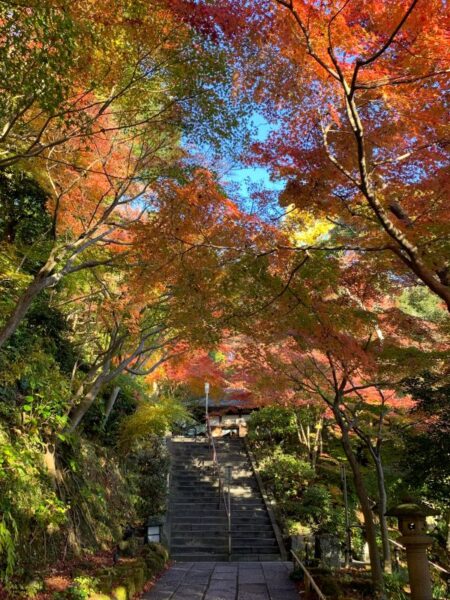 朱や橙、黄金の葉が風に舞う境内は、まるで時間がゆっくりと流れる別世界のようです。
