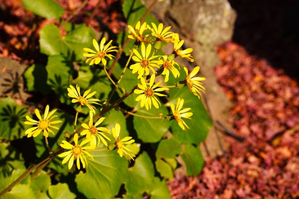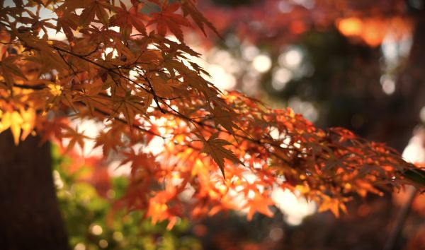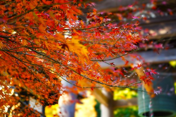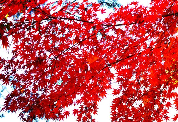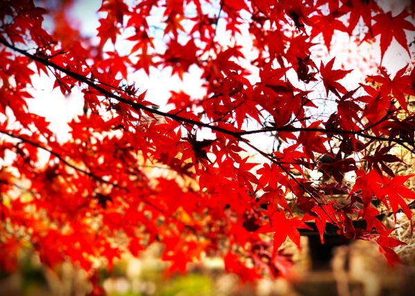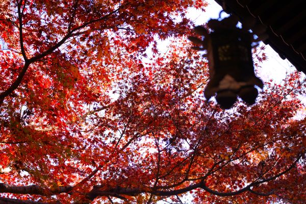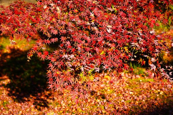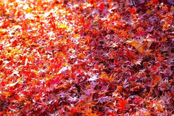 地面には落ち葉が積もり、赤い景色が広がっています。