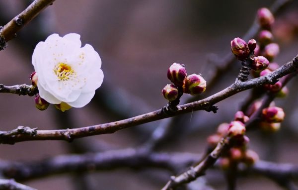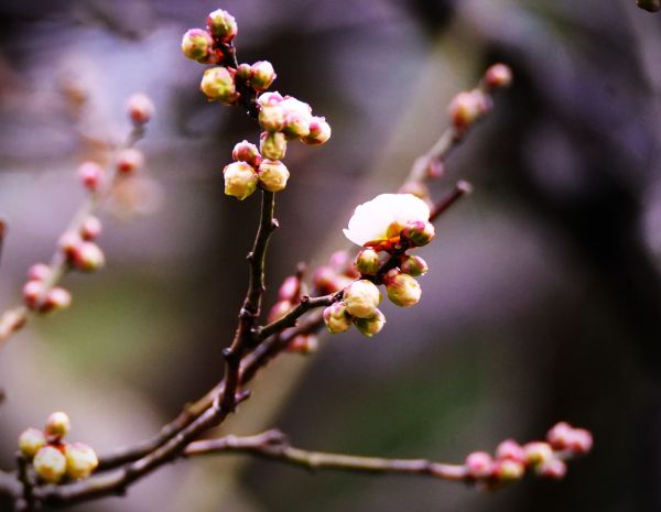 ウメ(梅)が開花しました。まだほとんどが蕾です。