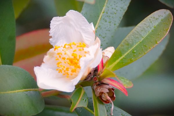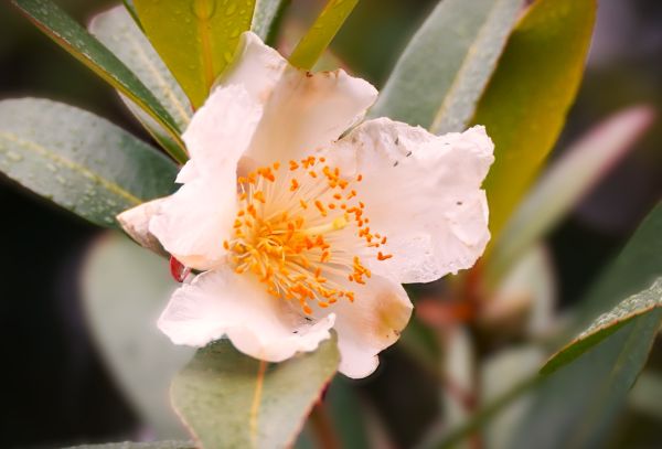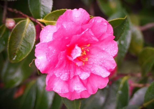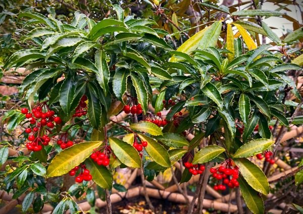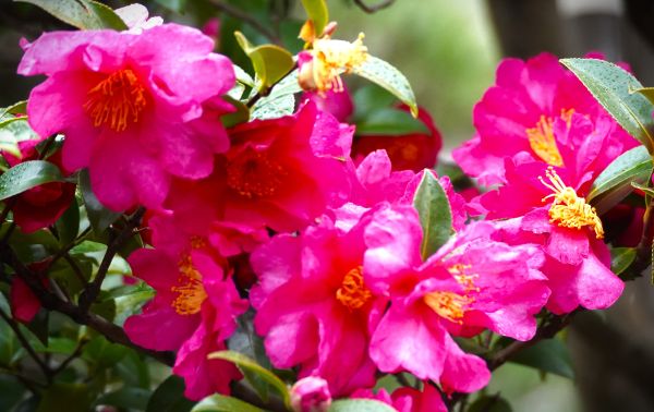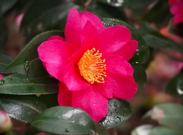 艶やかな葉に映える花は、寒い季節の中でも凛とした美しさを感じさせてくれます。