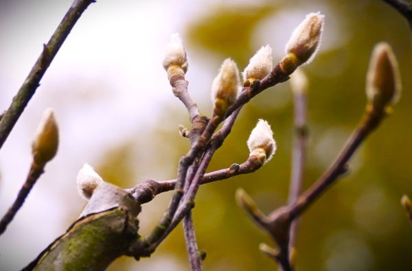 モクレン(木蓮)の冬芽 冬芽は毛で覆われ、寒さや乾燥から中の花を守っています。春に向けて花芽がじっと休み、やがて優しい花を咲かせます。