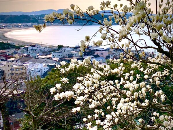 海を背に咲く白い花は、この時期だけの美しい景色です。