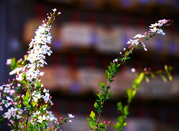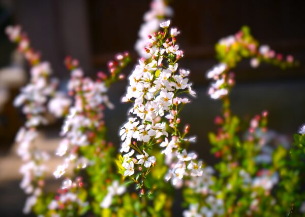 雪のように白い小さな花が枝にびっしりと咲き、春の訪れを知らせています。