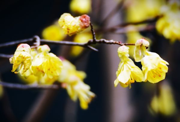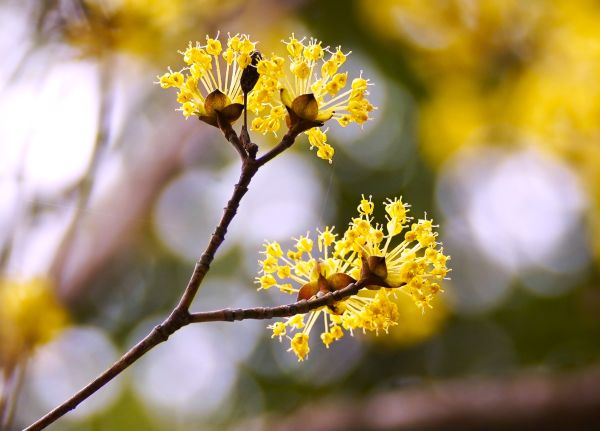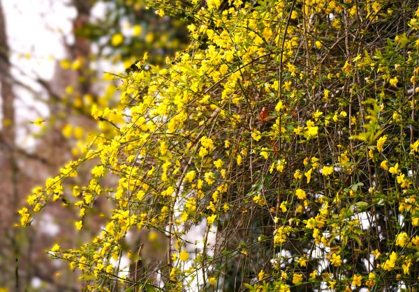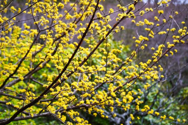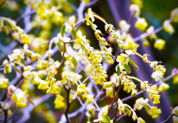 黄色い房状の花をつけるトサミズキ(土佐水木)とヒュウガミズキ(日向水木)。          名前の漢字は、それぞれ花の産地である土佐と日向に由来しています。