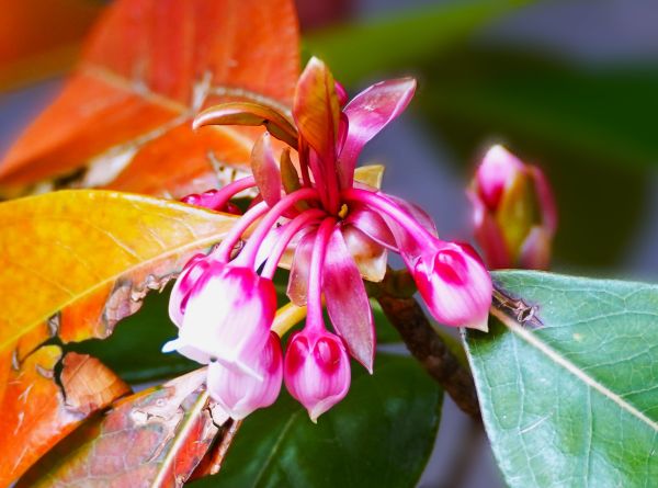 ホンコンドウダンツツジ(香港灯台躑躅)  別名ピンクシャンデリア。              蕾が膨らみ、少しずつシャンデリアのような可憐な姿を見せています。