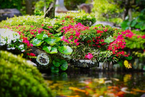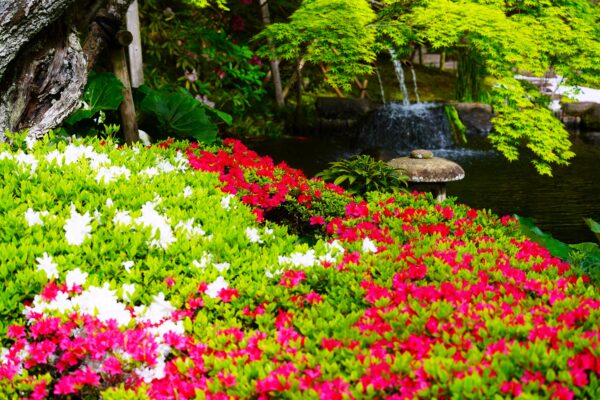 色とりどりに咲きそろい、春の境内に華やかな彩りが広がっています。