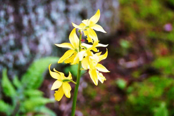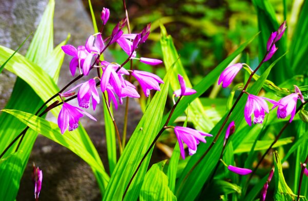 シラン(紫蘭)  すらりと伸びた茎の先に、紫の花が連なって咲く姿が特徴です。控えめながらも凛とした美しさがあります。