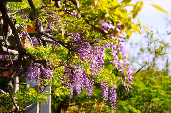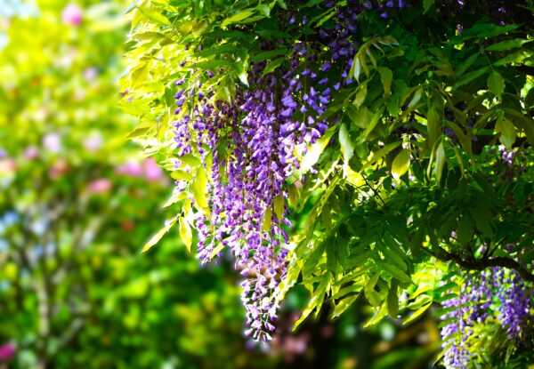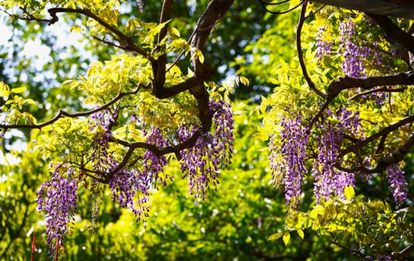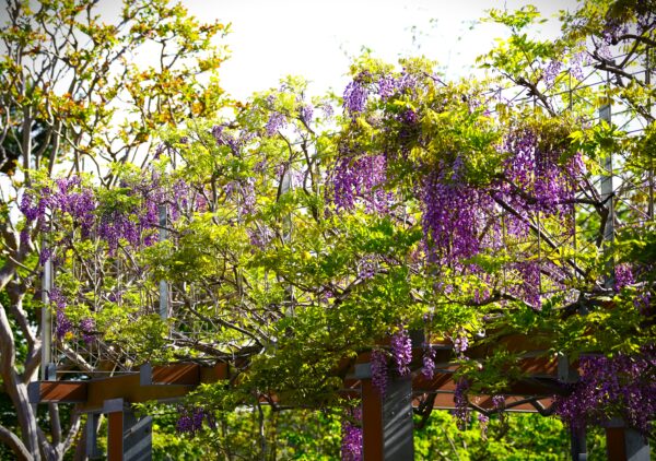 長く垂れ下がる花房に無数の小さな花を咲かせ、紫の糸を束ねたような優美な姿を見せます。