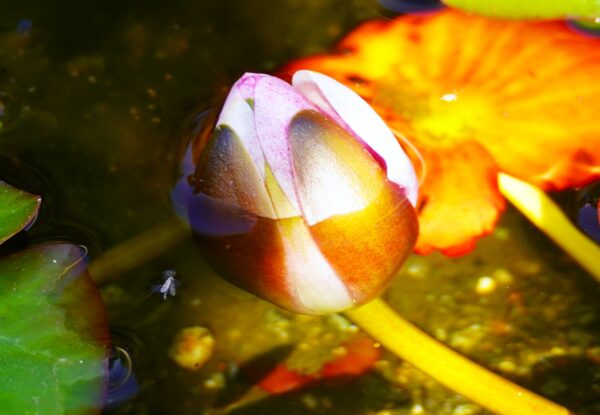 つぼみが水面に顔をのぞかせ、今年の開花を静かに待っています。