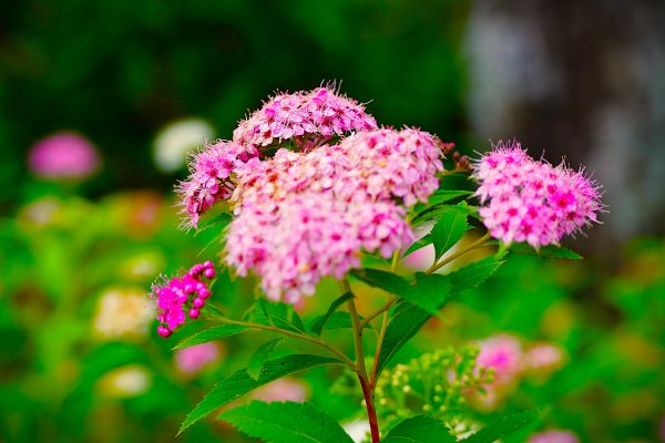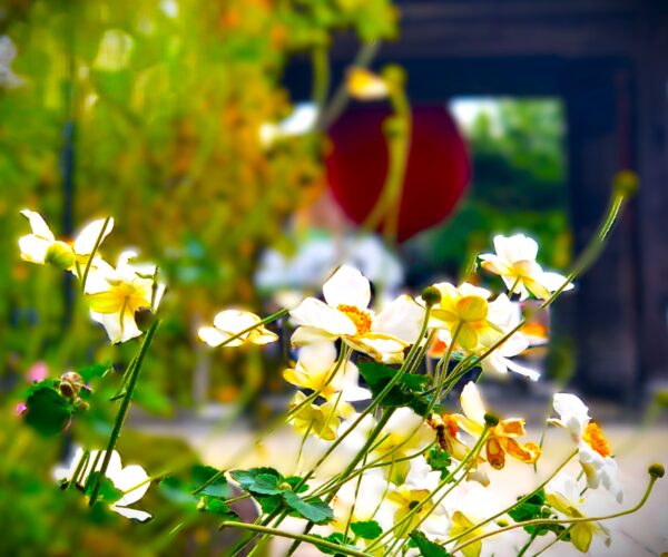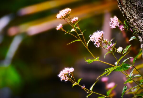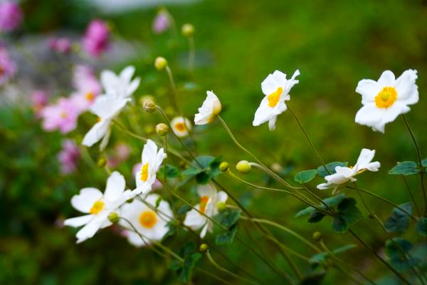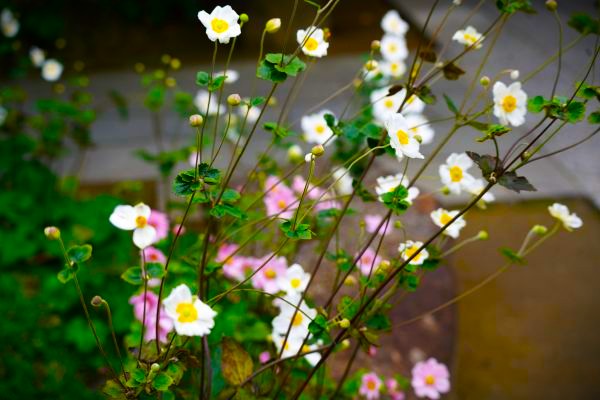 風に揺れる白やピンクの花は、思わずカメラを向けたくなる美しさです。