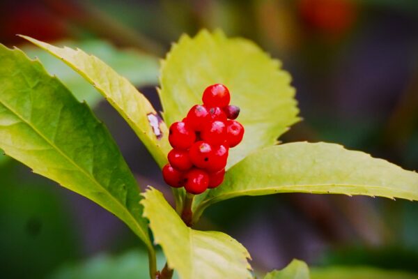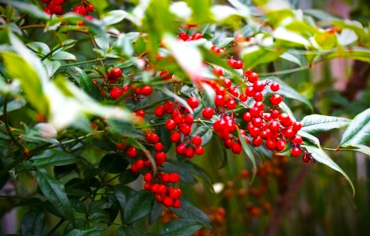 ナンテン(南天) 「難を転ずる」という縁起から玄関や門周りに植えられることも多く、魔除けや厄除けの象徴として親しまれています。