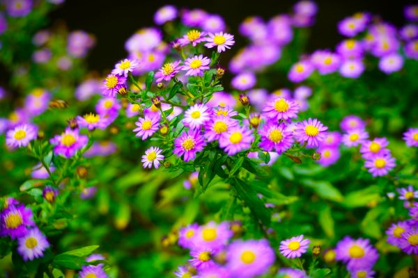 小さな紫の花がたくさん咲いて、秋の境内がぱっと明るくなりました。