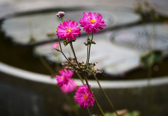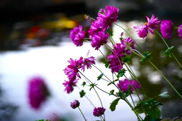 八重咲きのシュウメイギク。一重咲きよりもボリュームがあり、思わず見入ってしまう可憐さです。